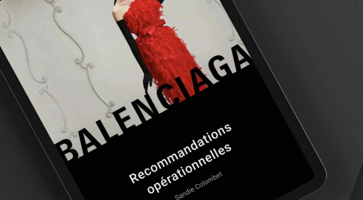 (sujet formation chef de projet) Analyser les besoins d’un client et faire une recommandation opérationnelle. Problématique : Repenser le dispositif de vente en ligne de la marque Balenciaga (France) afin d’acquérir de nouveaux clients. Stratégie : Une stratégie plus engageante et fédératrice sur les réseaux sociaux afin d’augmenter les ventes en ligne. Recommandation : Mettre à niveau les différents canaux et leviers digitaux afin de répondre aux nouveaux objectifs de vente en ligne. Expertise Analyse des besoins Vision produit Marketing digital Benchmark & veille Planification et coordination Suivi et reporting Qualité et tests Logiciels utilisés Google Tag Manager Google Analytics Figma Excel Photoshop InDesign Canva Gantt Project Voir la présentation Télécharger la brochure